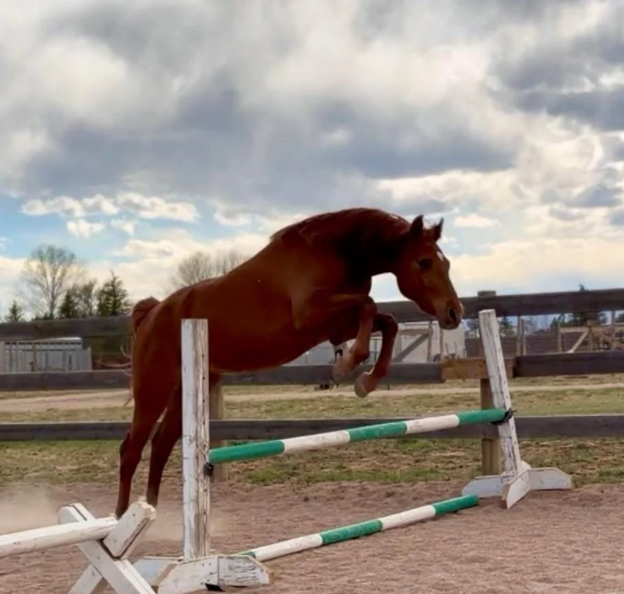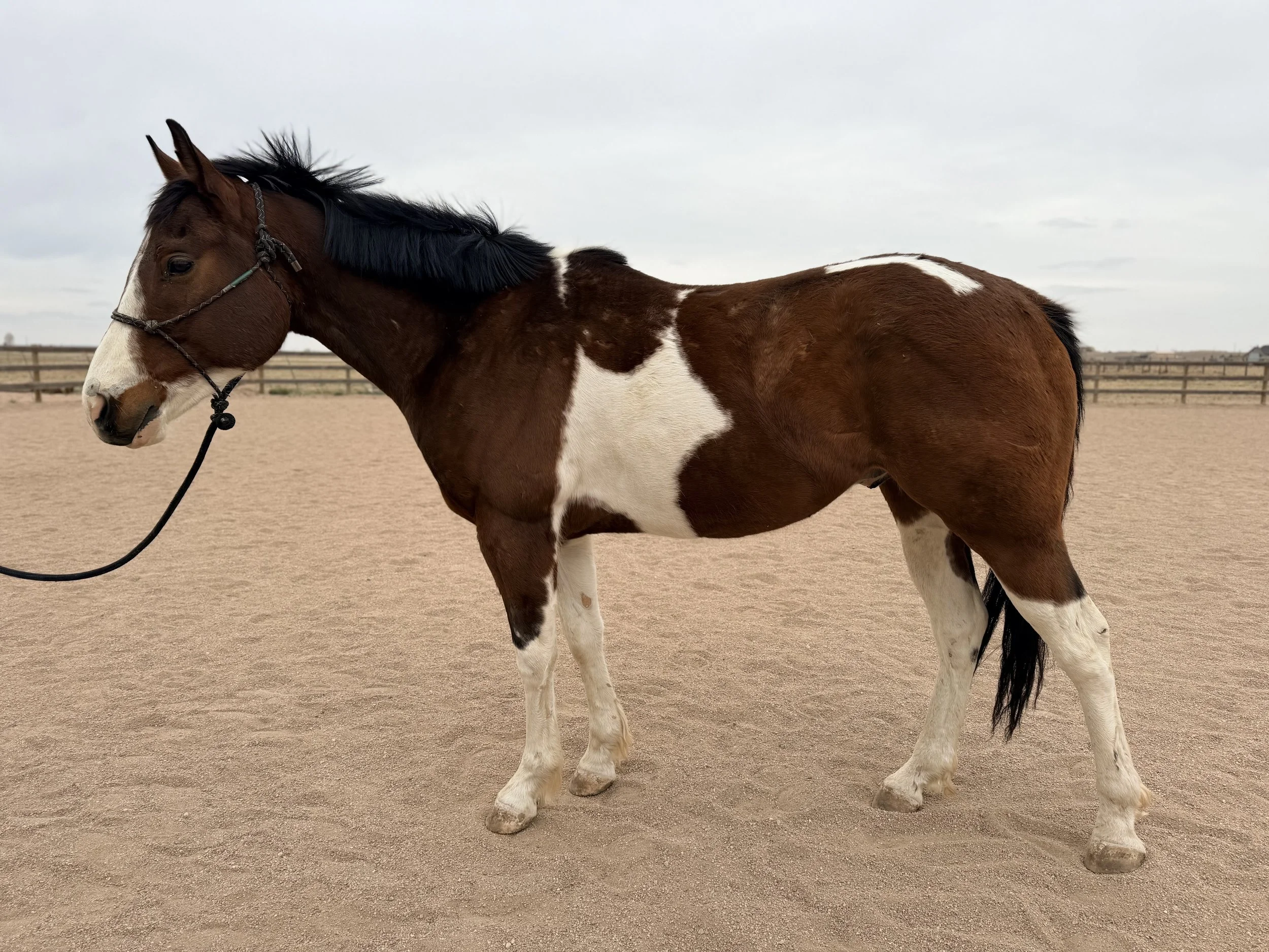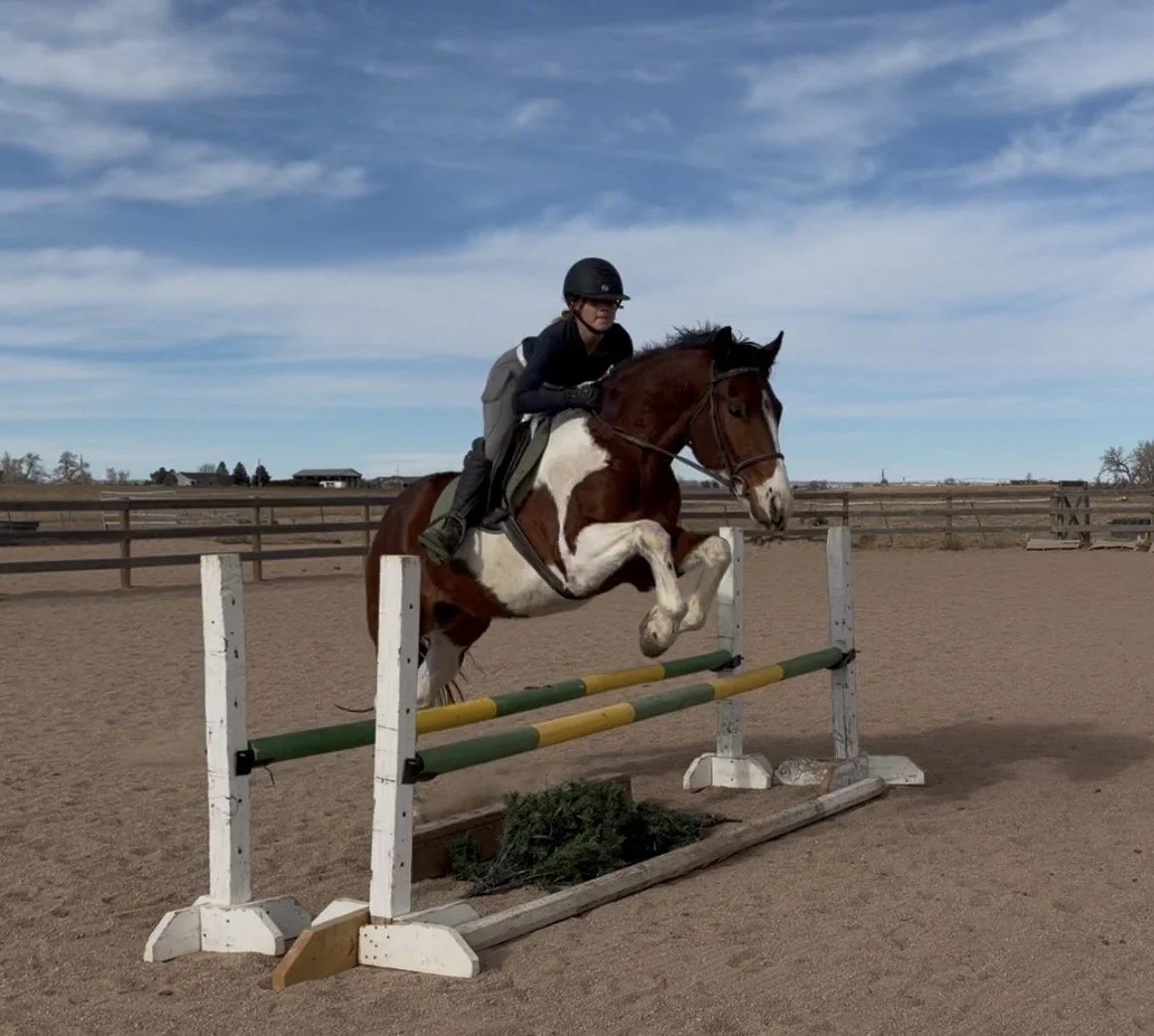 Bayard is one of the best minded young horses we’ve had in a while! This 4 year old, 15hh Appendix (TB/Paint) gelding is incredibly sweet, easy to handle and fun to ride! He’s jumping courses, has been out on the trail, to schooling shows and cross country schooling! We’ve used Bayard in intermediate + lessons, ridden him western, and even had kids ride him double! Just a super minded youngster with a ton of potential! Bayard does have minor findings on x rays, and we are happy to discuss with serious buyers. SOLD
