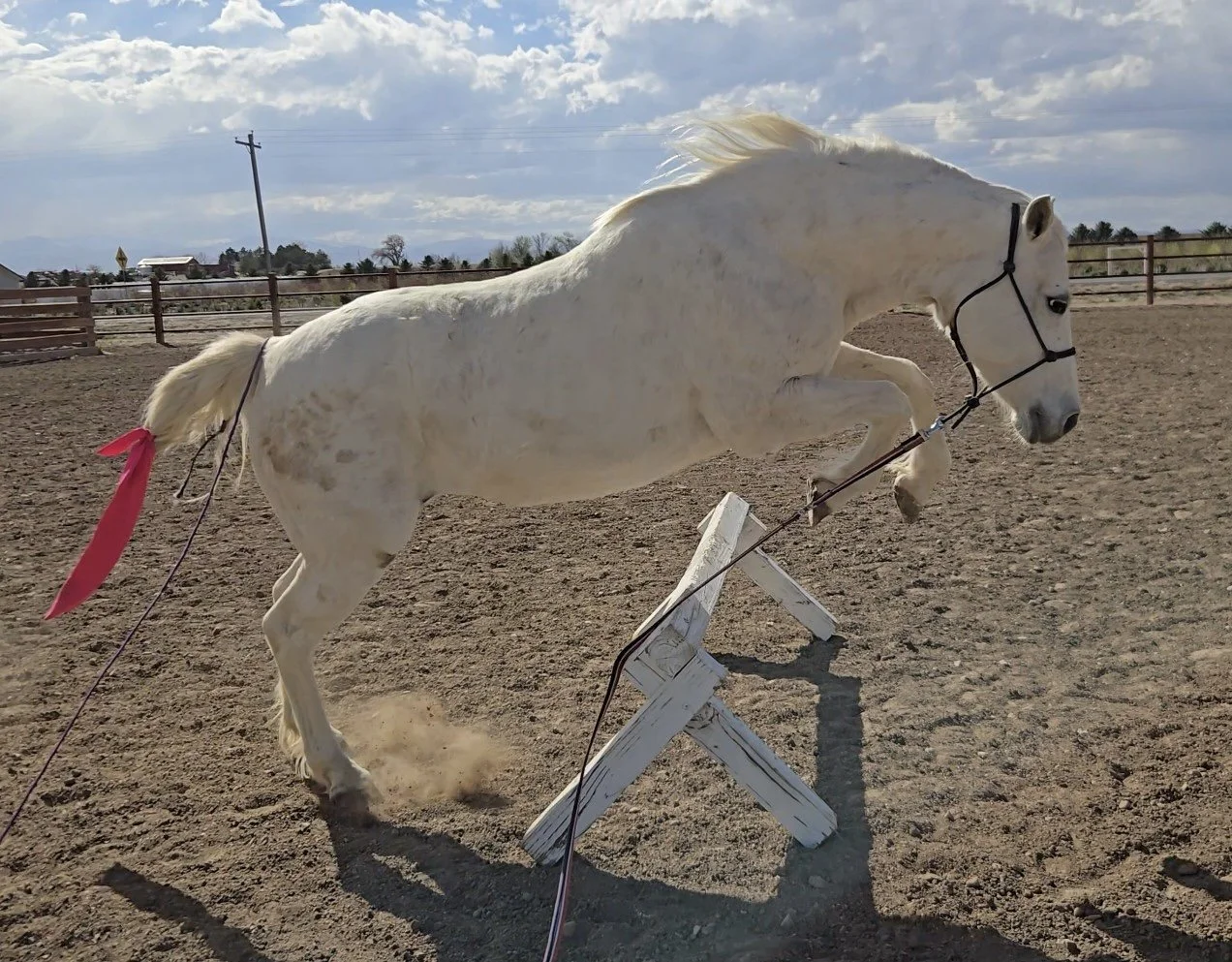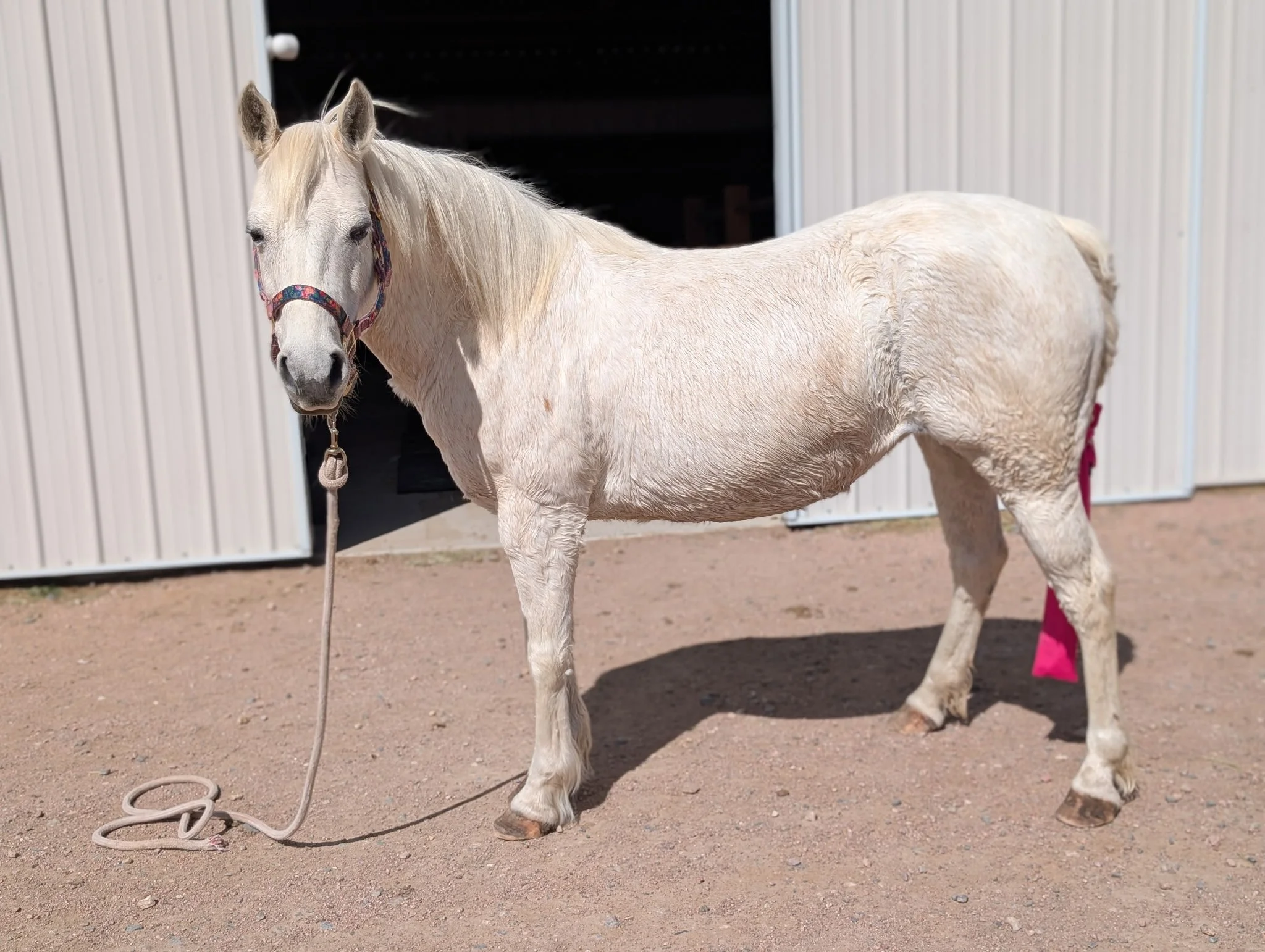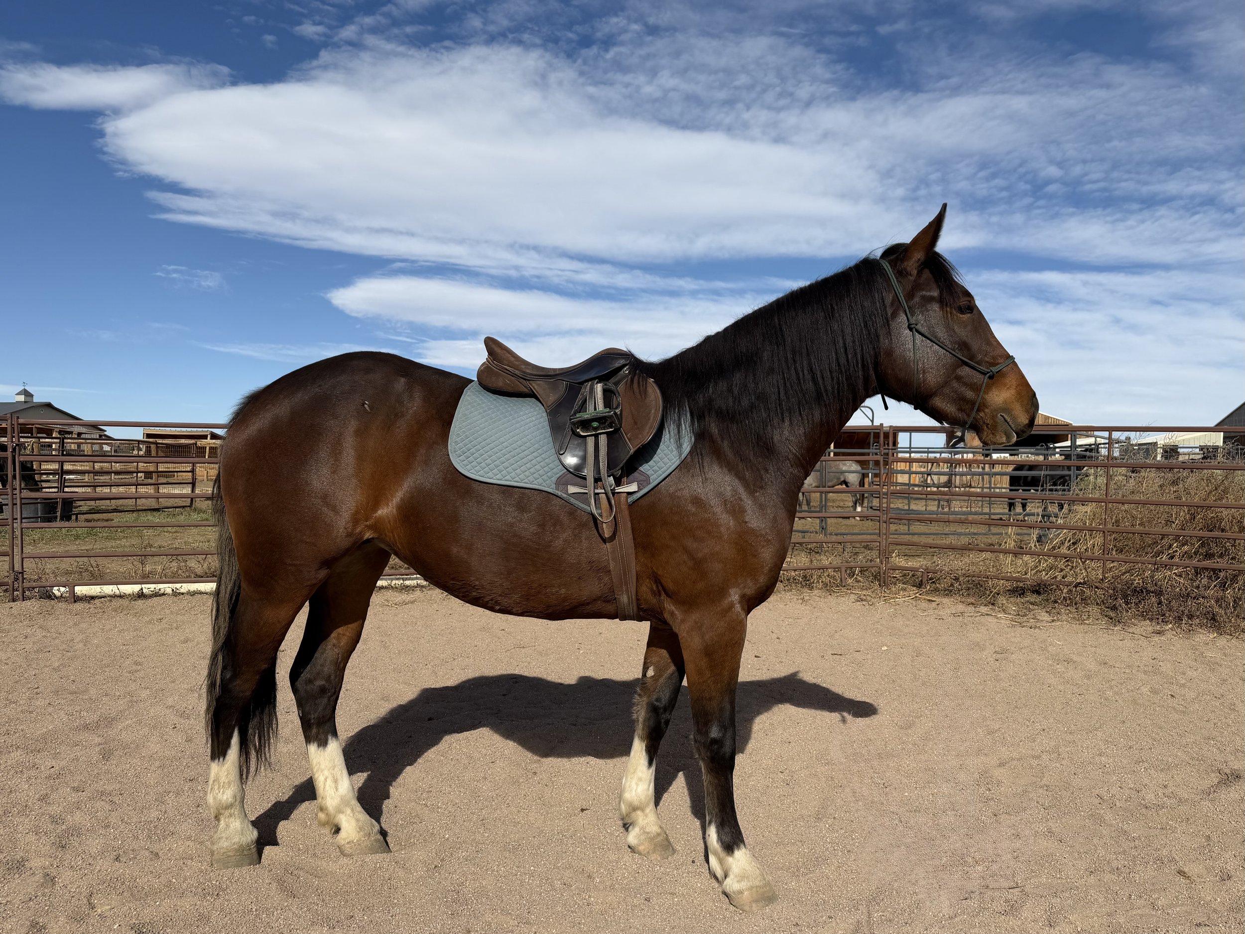 Rosa continues to hone her riding skills, learning basic Dressage, jumping, and hitting the trails. She even competed at a schooling show with Head Trainer, Cayla’s daughter, Elsa! Though, she is more high energy, she loves riding and loves to have a job. We’d love to see this girl hitting the trails, competing in endurance or becoming a confident young riders all around mount! $4500