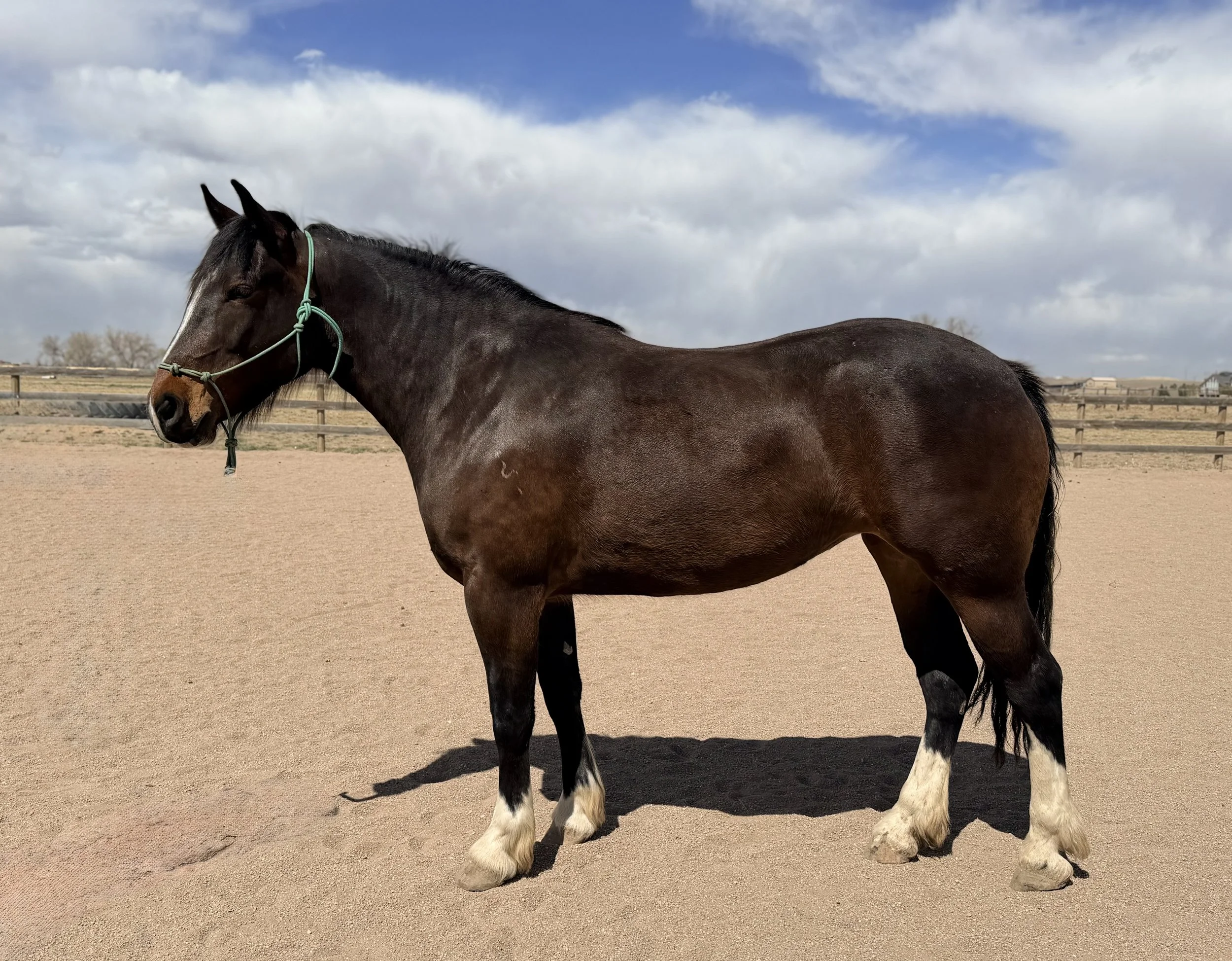 Rita is back for some more handling training and to start the process of getting under saddle, and she is ready to find her perfect home! Rita is a 3 year old filly standing about 15.1hh and growing! She is by a Clydesdale stud, and out of a Quarter horse mare, both of which are working ranch mounts! Rita had an uncomplicated chip removal end of August 2025, so requires a home that understands she may need a bit more rehab and time to grow up before any heavy riding work, and pick up her training next spring. This lovely mare will be a very versatile partner for someone! $4500 -negotiable to the right home
